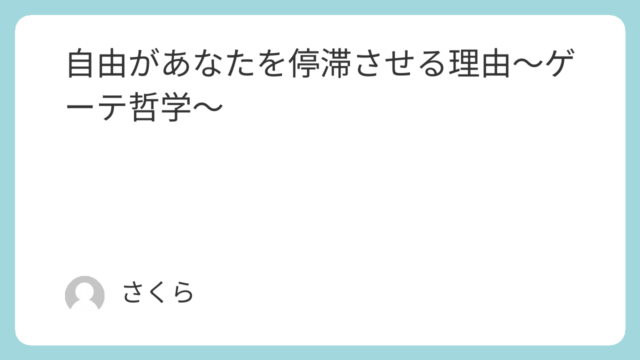 自由があなたを停滞させる理由~ゲーテ哲学~