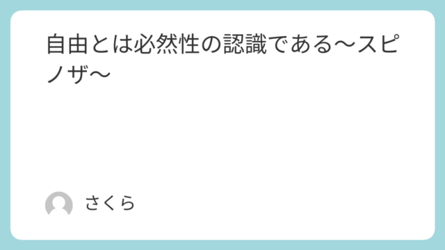 自由とは必然性の認識である~スピノザ~