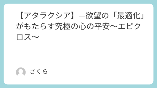 【アタラクシア】—欲望の「最適化」がもたらす究極の心の平安~エピクロス~